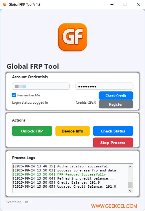 Global FRP Tool es un software de alto rendimiento diseñado exclusivamente para remover el bloqueo de cuenta Google (FRP) en telefonos Xiaomi. Funciona mediante un sistema de créditos de servidor que garantiza autorizaciones rápidas, seguras y estables.
