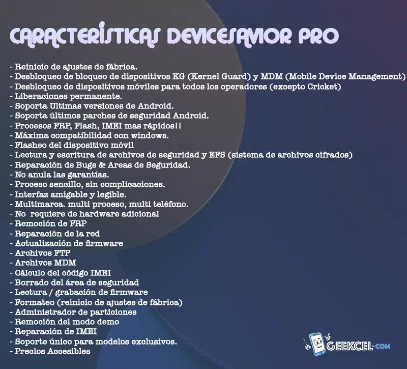 DeviceSavior Pro Tool Activación Licencia y Créditos es el software profesional más completo para reparación y desbloqueo de celulares Android. Te permite desbloquear KG/MDM, remover FRP, reparar IMEI, resetear valores de fábrica y mucho más con solo un cable USB, sin dongle ni box física.