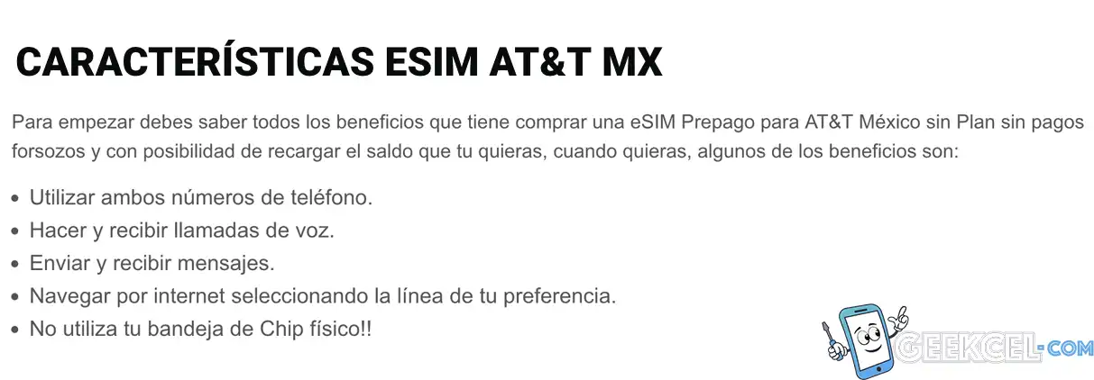 La eSIM de AT&T no necesita planes mensuales, es plan Amigo de AT&T, nosotros te enviamos tu eSIM con lada de tu país, hazlo desde la comodidad de tu casa sin riesgos.